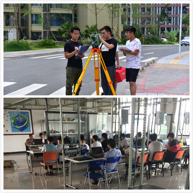 土木与建筑工程学院在学校环形马路测量,互联网+学院学生在4G网络课堂上课