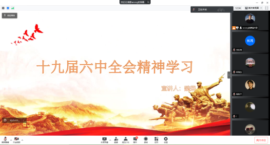 本次活动的主持人,学院党务办工作人员魏荣同学,带领全体学生党员主要学习了党的十九届六中全会的重要意义和精神,党的十九届六中全会审议通过了《中共中央关于党的百年奋斗重大成就和历史经验的决议》(以下简称《决议》)。《决议》全面总结了党的百年奋斗重大成就和历史经验,是郑重的历史性、战略性决策,体现了我们党重视和善于总结历史经验、运用历史规律、掌握历史主动的高度政治自觉,体现了我们党牢记初心使命、继往开来的自信和担当,对推动全党进一步统一思想、统一意志、统一行动,团结带领全国各族人民夺取新时代中国特色社会主义新的伟大胜利,具有重大现实意义和深远历史意义。