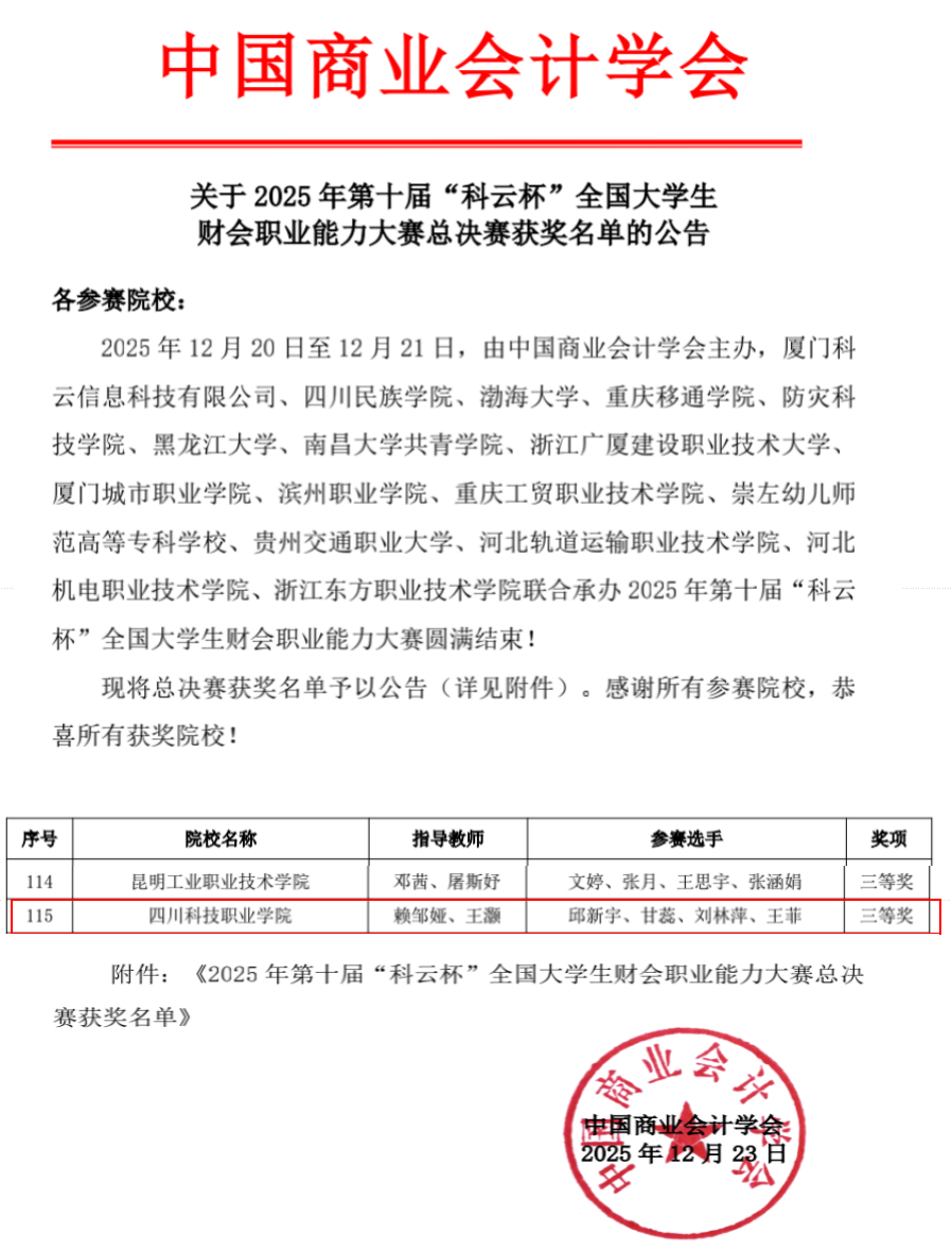 喜报!我校数字商务学院在第十届“科云杯”全国财会大赛中斩获佳绩